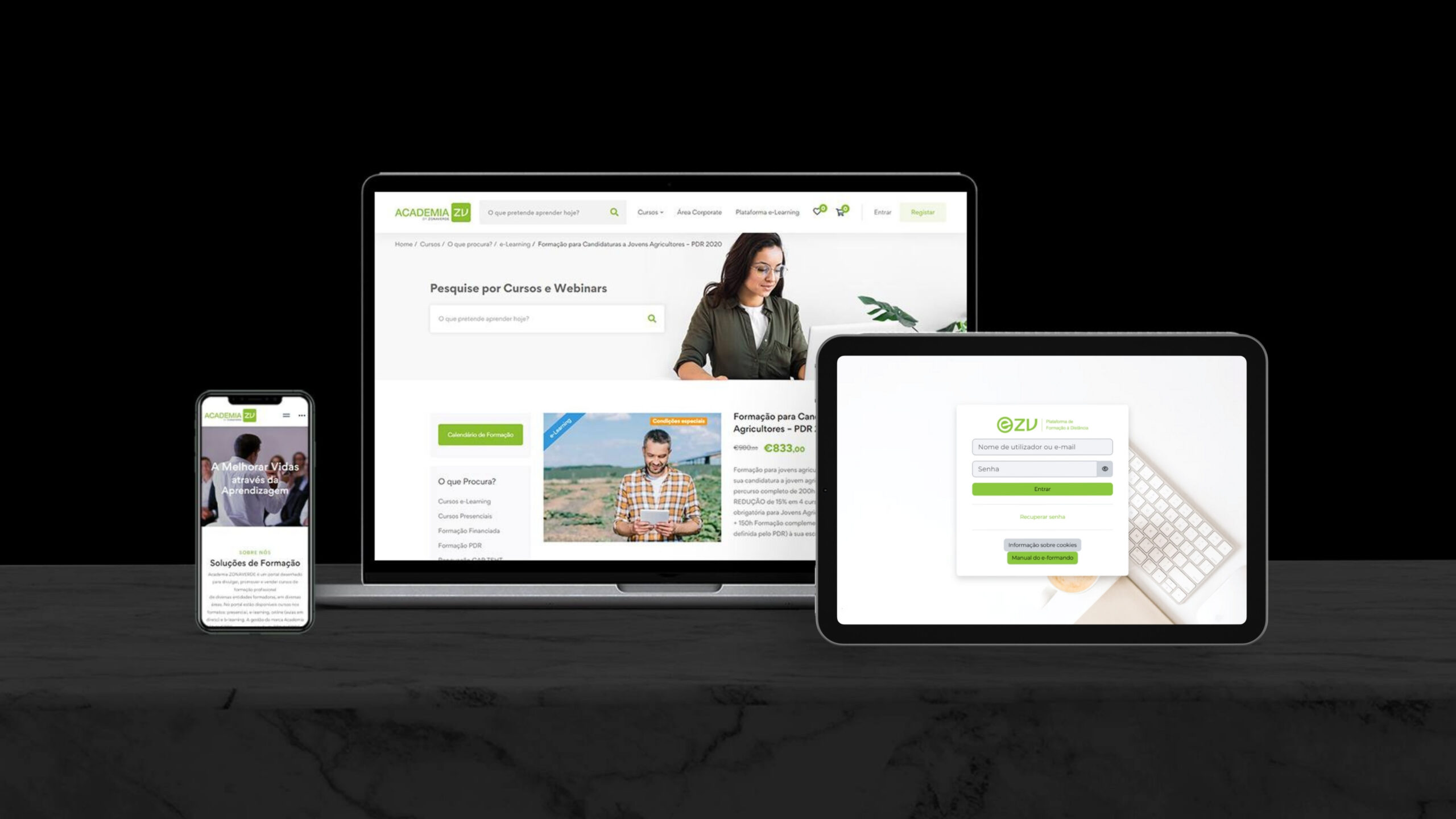A proximidade da marca Zonaverde com a Digitalgreen faz parte da história de ambas as marcas. Assim, não poderia ser mais natural que a Digitalgreen fosse o parceiro escolhido para o desenvolvimento de mais uma plataforma de comunicação digital para a Zonaverde. Plataforma de e-commerce para a comercialização dos serviços de formação, que visa, não só o mercados B2C como o B2B, integrado com meios de pagamento, serviços de ensino á distância e também plataforma de aulas virtuais (video-aulas) foi o resultado de mais um desenvolvimento à medida das necessidades identificadas.